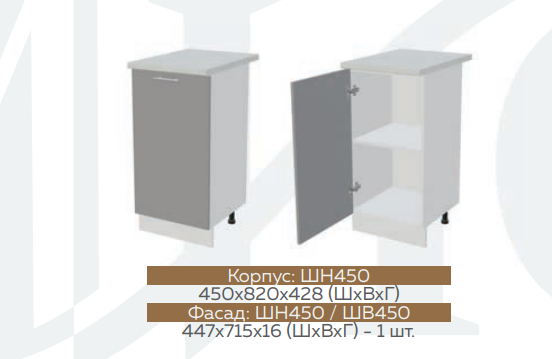 Глубина нижних шкафов без учета столешницы: 444 мм, с учетом столешницы 600 мм