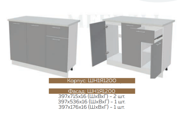 Глубина нижних шкафов без учета столешницы:445 мм, с учетом столешницы 600 мм
