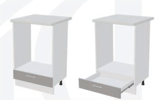 Глубина нижних шкафов без учета столешницы: 444 мм, с учетом столешницы 600 мм