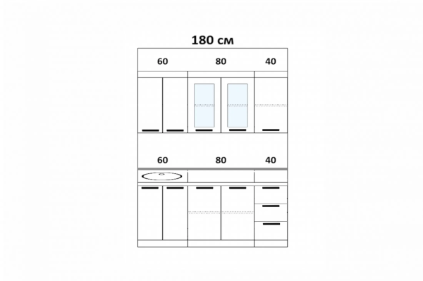 Высота верхних шкафов: 685 мм