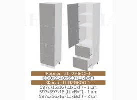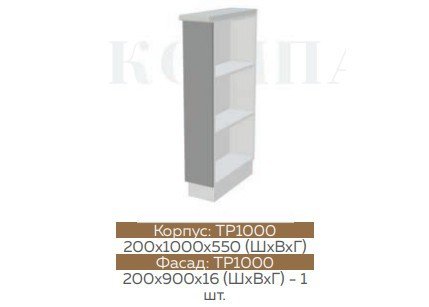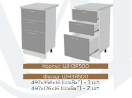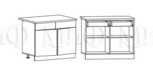 Глубина нижних шкафов без учета столешницы:490 мм, с учетом столешницы 600 мм