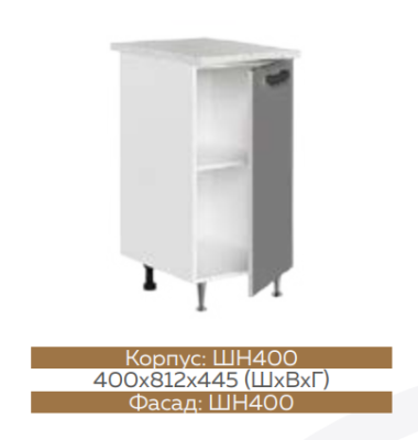Глубина нижних шкафов без учета столешницы:445 мм, с учетом столешницы 600 мм