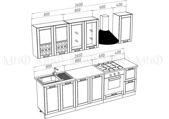 Высота верхних шкафов: 736 мм